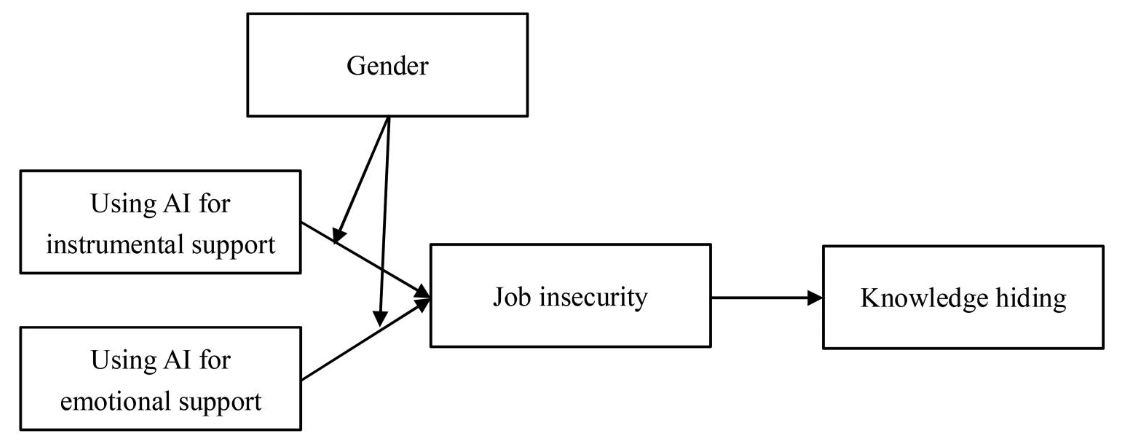 Abstract: Previous studies have shown that employee–AI interactions increase job insecurity and negative behaviors, mainly due to AI’s focus on task assistance while neglecting its role in emotional support. We categorize employee–AI interactions into two types: using AI for emotional support and using AI for instrumental support. We further differentiate their impact on job insecurity and knowledge hiding. Results from a multi-wave survey involving 495 participants showed that using AI for instrumental support increases job insecurity, subsequently leading to knowledge hiding, while using AI for emotional support reduces these detrimental effects. Furthermore, the mitigating effect of emotional support on job insecurity and knowledge hiding is more pronounced for women than men. No gender differences were found in the impact of instrumental support. Our study contributes to the human–AI interaction literature by exploring how the nature of AI interactions influences workplace behavior.