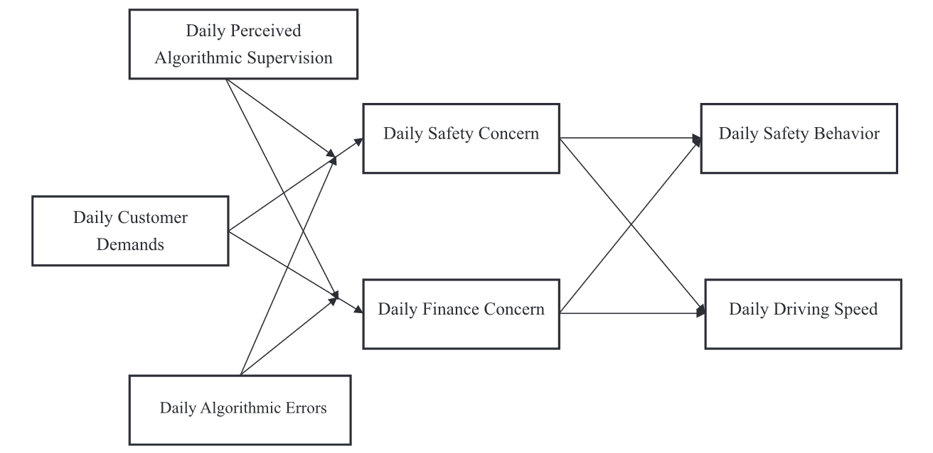 Abstract: Gig workers in the food delivery industry constantly face life-threatening occupational safety risks. However, little scholarly attention has been paid to the hazards of this work that entail potential dangers in traffic situations. Drawing on paradox theory, we theorize a typical tension in the daily experiences of food delivery workers, the finance–safety paradox. We examine how this dilemma can be triggered by customer demands that could influence delivery workers’ safety (i.e., safety behavior and driving speed) through altering their finance and safety concerns. Using the experience sampling method, we conducted a 14-day diary study with 117 food delivery workers (1430 observations) in China. The results indicate that daily customer demands increased workers’ daily safety concern when workers perceived stronger algorithmic supervision and fewer algorithmic errors on the focal day. Higher daily safety concern resulted in increased daily safety behavior and lower daily driving speed, while higher daily finance concern enhanced daily driving speed. Our research identifies a key driver of safety risks for gig workers in the food delivery industry, elucidates the role of algorithms in their safety compliance, and broadens our knowledge of how they navigate the salient tension between financial precarity and safety risks.